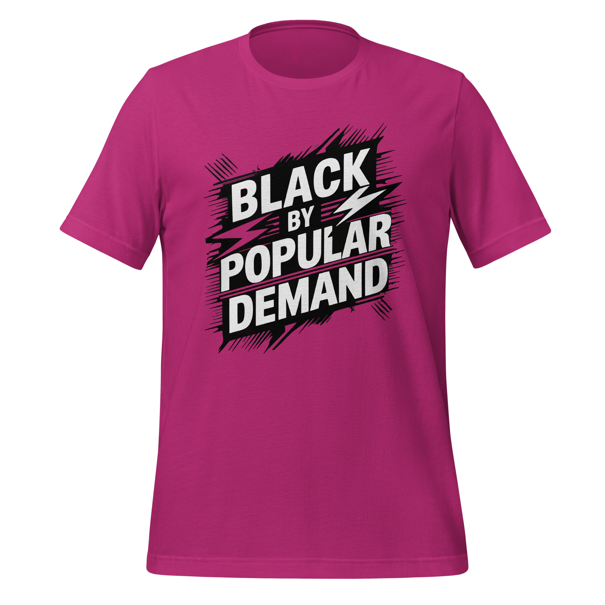 Make a bold and stylish statement with our “Black By Popular Demand” Unisex T-shirt. Crafted from premium, soft cotton, this tee offers exceptional comfort and durability for all-day wear. The powerful slogan celebrates cultural pride and resilience, making it a perfect addition to any wardrobe. Ideal for both casual outings and special events. This T-shirt is designed to fit and flatter all body types. Show off your pride and popularity with this iconic and empowering tee.