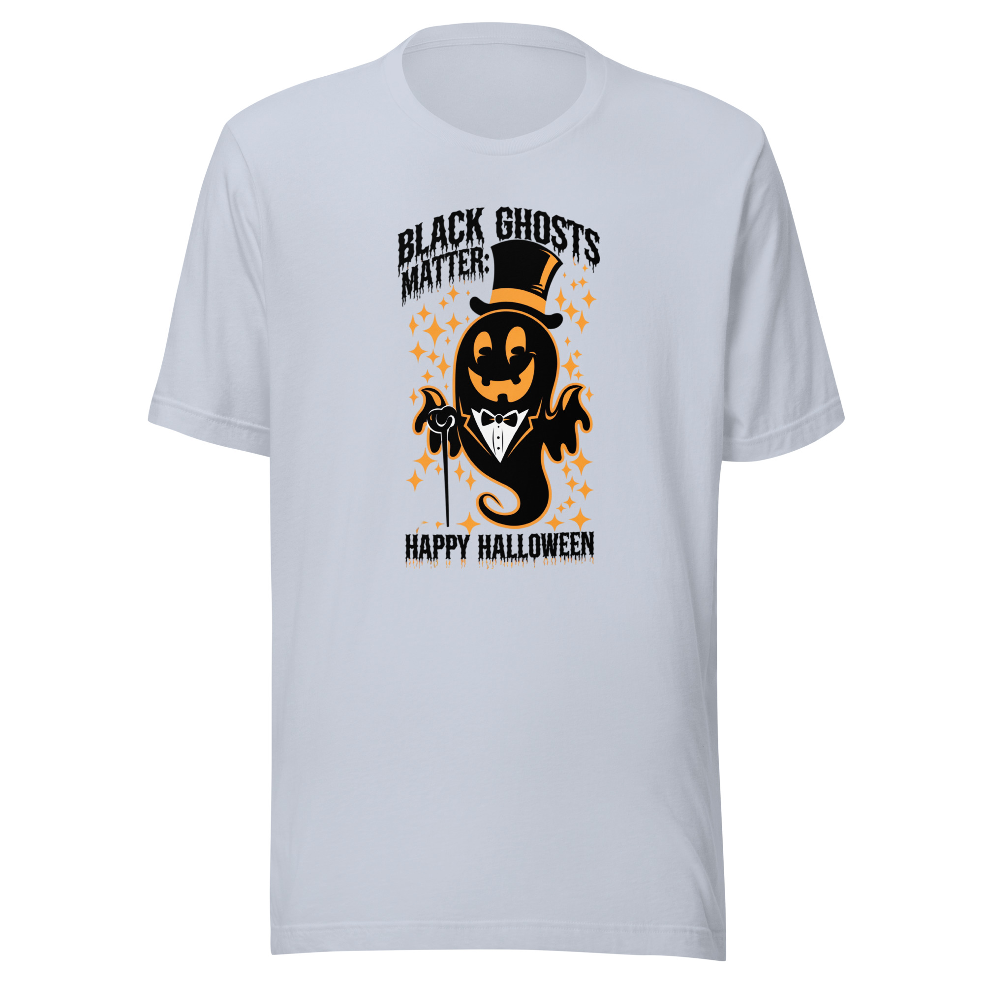This Halloween, make a bold statement with our “Black Ghosts Matter: Happy Halloween” t-shirt. Combining spooky fun with a powerful message, this design highlights the significance of Black lives and culture, even during the eerie Halloween season. Made from soft, premium fabric, this t-shirt is perfect for Halloween parties, casual outings, or simply showing off your cultural pride. Available in a range of sizes.