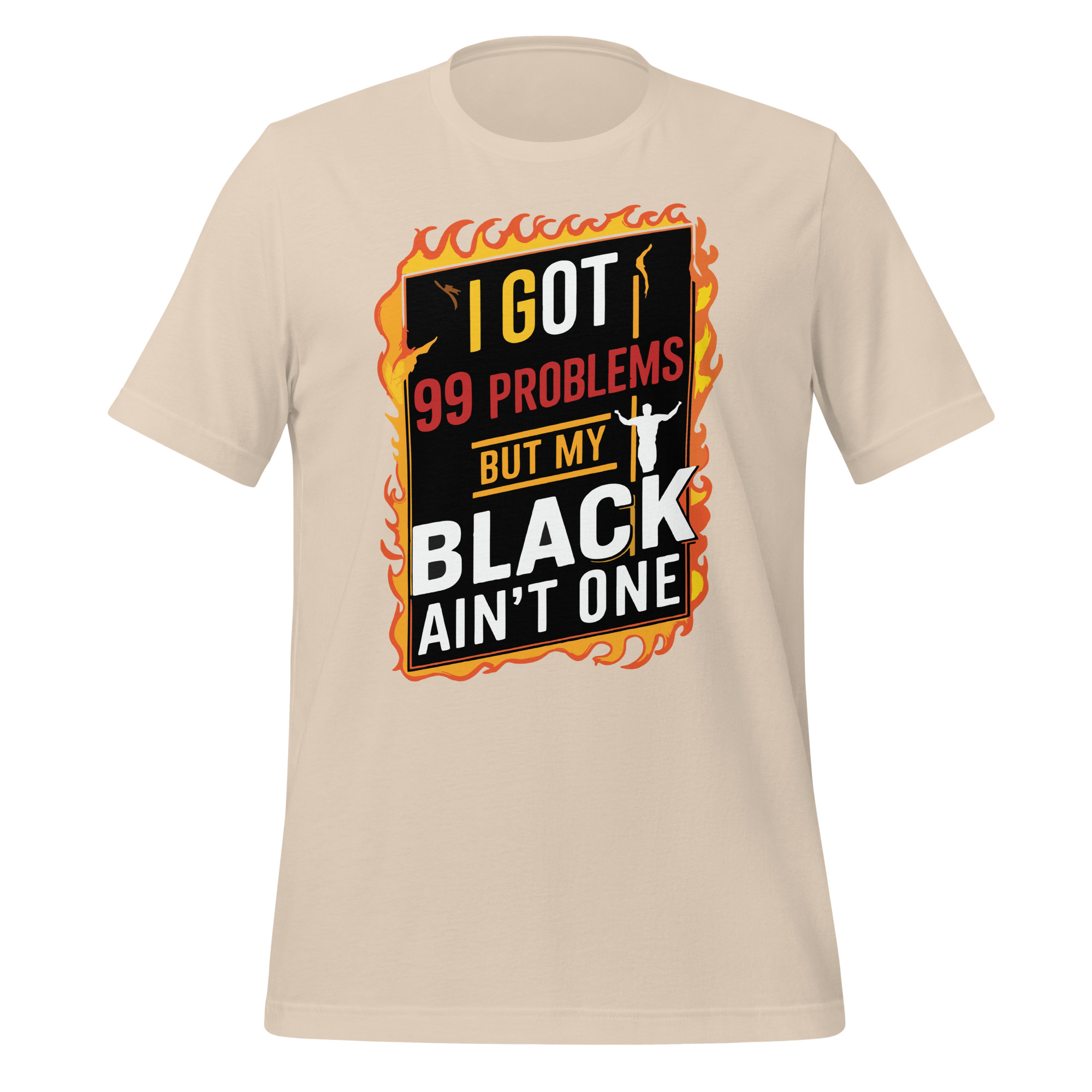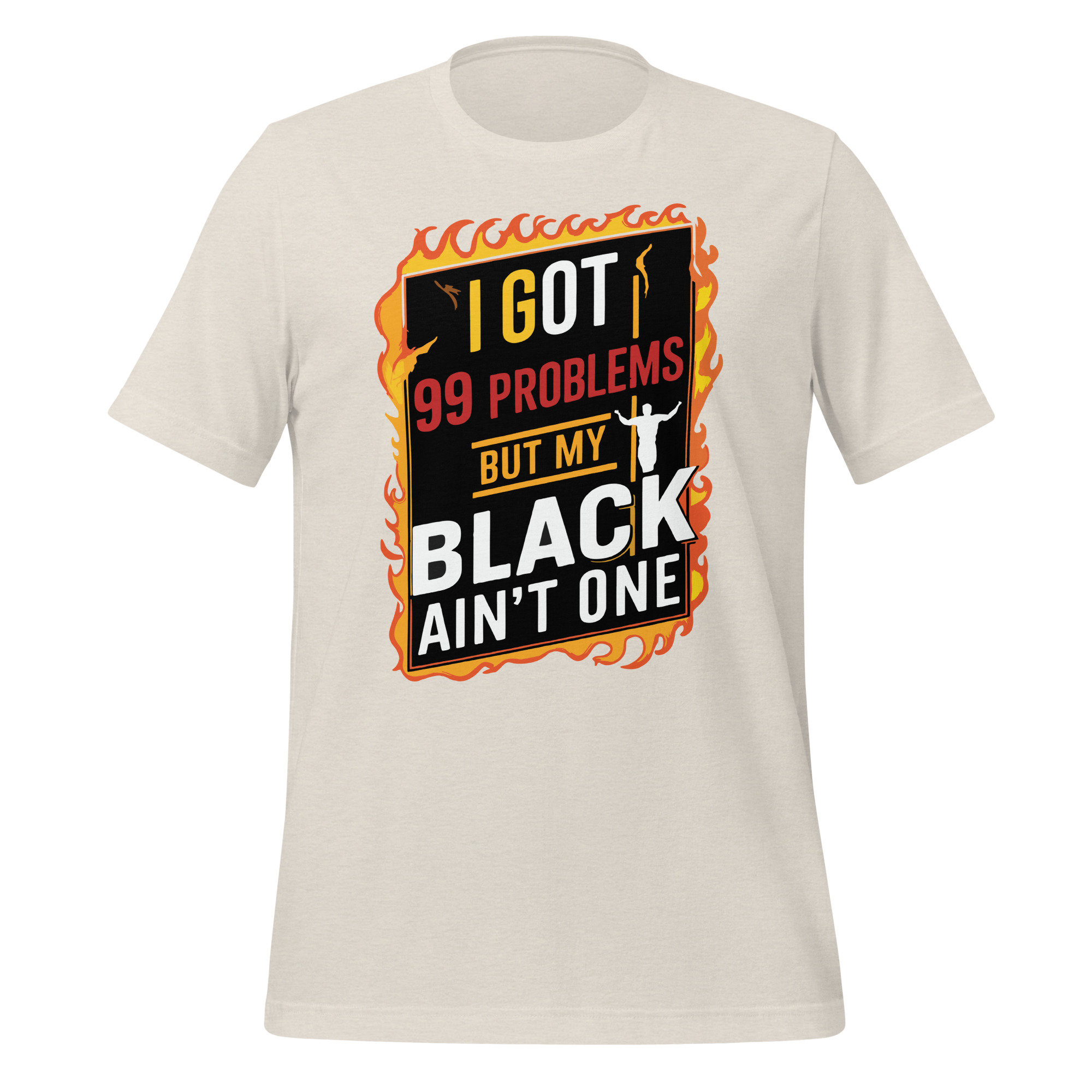 Declare your confidence and pride with our “I Got 99 Problems but My Black Ain’t One” T-shirt. Crafted from premium, soft cotton, this tee provides exceptional comfort and durability for all-day wear. The bold slogan is a powerful statement of self-love and resilience, celebrating the beauty and strength of Black culture. Perfect for casual outings, social events, or as a statement piece, this T-shirt is a stylish and meaningful addition to your wardrobe. Wear it proudly and let the world know that your Black is beautiful and unbreakable.