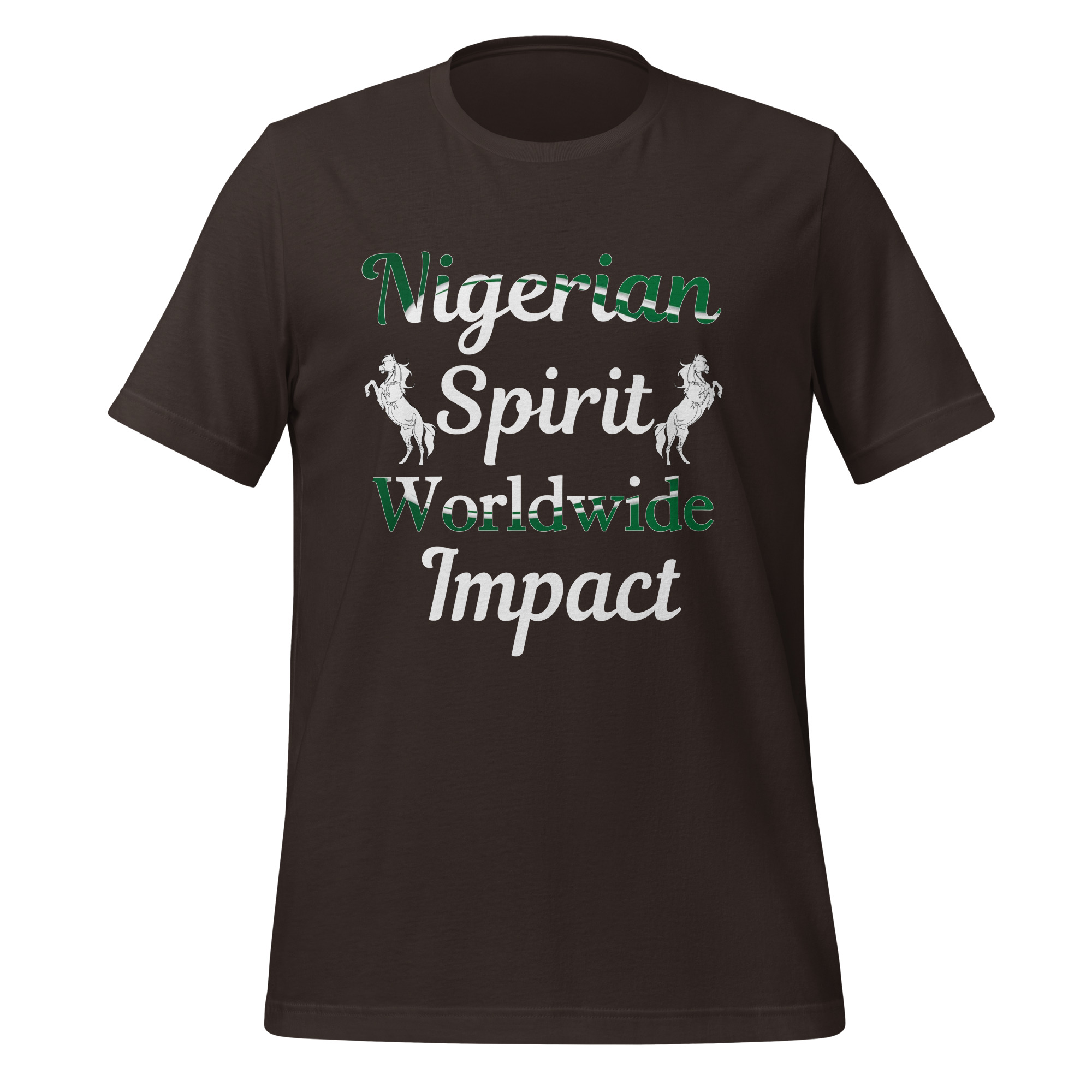 Featuring the powerful statement “Nigerian Spirit, Worldwide Impact” prominently displayed on the front. This shirt is more than just apparel – it’s a declaration of identity and influence. Whether you’re representing Nigeria on the streets of Lagos or leaving your mark in cities across the globe, this tee will ensure you do so with pride.